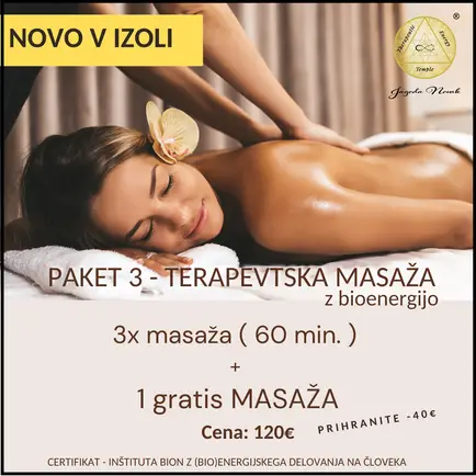 Masaže pomagajo sprostiti mišično napetost, zmanjšati bolečine in izboljšati cirkulacijo, hkrati pa energetski pristop odpravlja blokade v energijskem pretoku. -